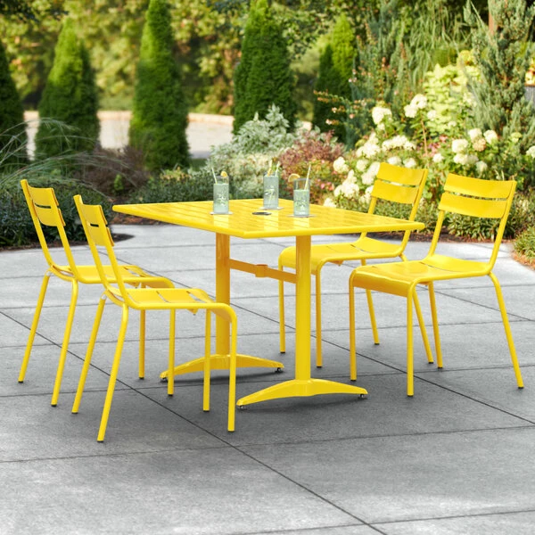 Lancaster Table & Seating 32″ X 48″ Yellow Powder-Coated Aluminum Standard Height Outdoor Table With Umbrella Hole And 4 Side Chairs