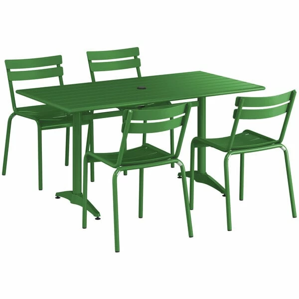 Lancaster Table & Seating 32″ X 60″ Green Powder-Coated Aluminum Standard Height Outdoor Table With Umbrella Hole And 4 Side Chairs