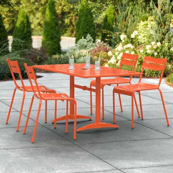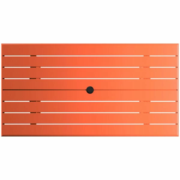 Lancaster Table & Seating 32″ X 60″ Orange Powder-Coated Aluminum Dining Height Outdoor Table With Umbrella Hole