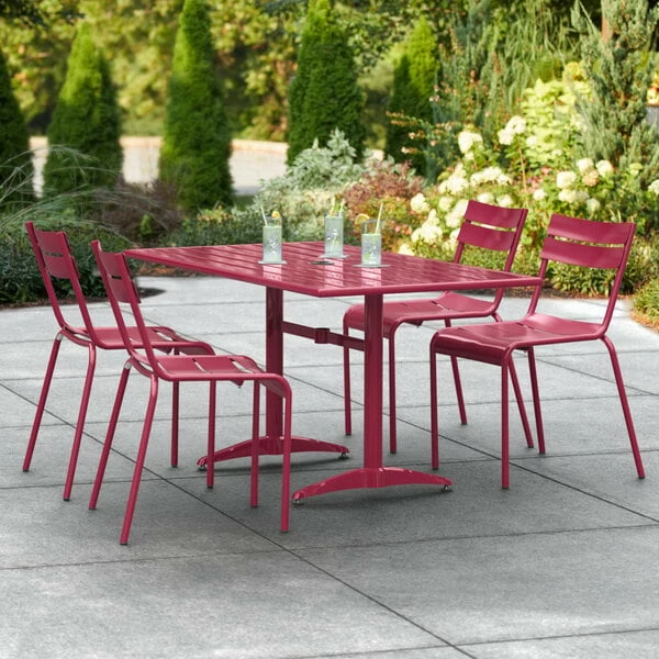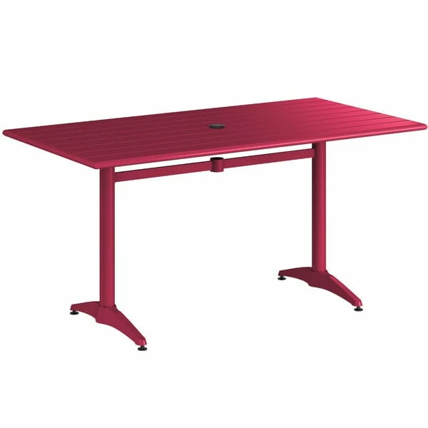 Lancaster Table & Seating 32″ X 60″ Sangria Powder-Coated Aluminum Dining Height Outdoor Table With Umbrella Hole