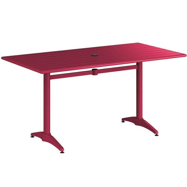 Lancaster Table & Seating 32″ X 60″ Sangria Powder-Coated Aluminum Standard Height Outdoor Table With Umbrella Hole And 4 Side Chairs