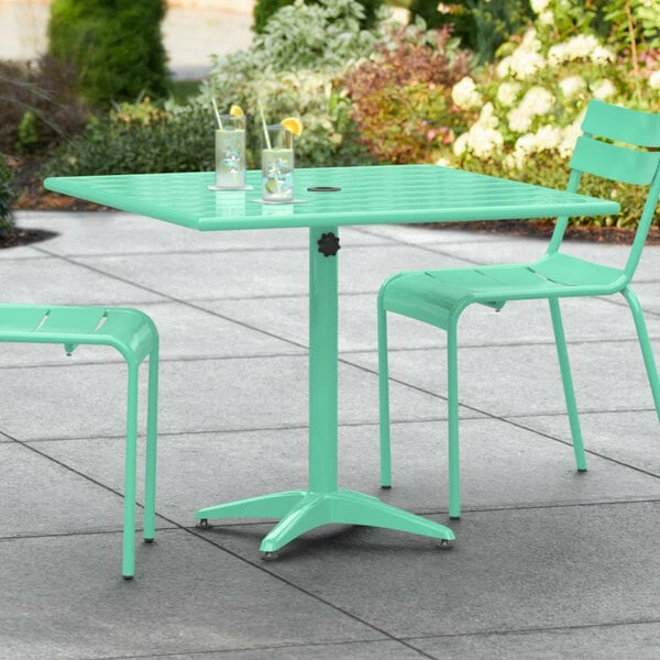 Lancaster Table & Seating 36″ X 36″ Sea Foam Powder-Coated Aluminum Dining Height Outdoor Table With Umbrella Hole