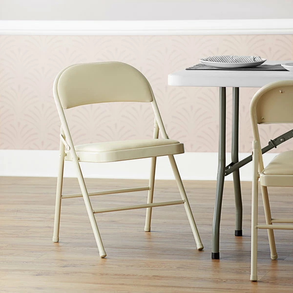 Lancaster Table & Seating Beige Vinyl Folding Chair With Padded Seat