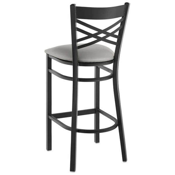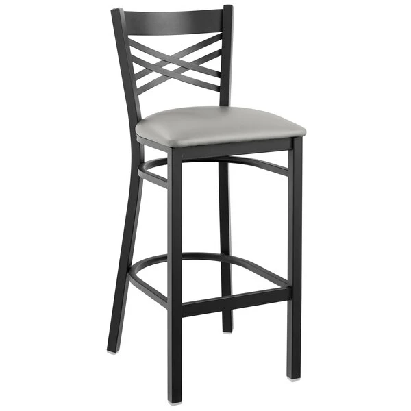 Lancaster Table & Seating Black Finish Cross Back Bar Stool With 2 1/2″ Light Gray Vinyl Padded Seat
