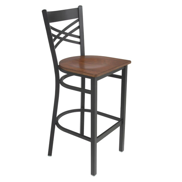 Lancaster Table & Seating Black Finish Cross Back Bar Stool With Antique Walnut Wood Seat