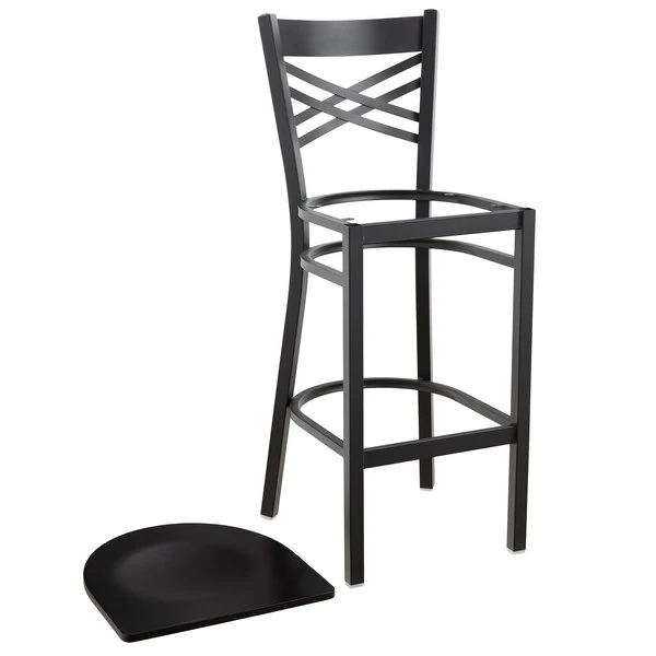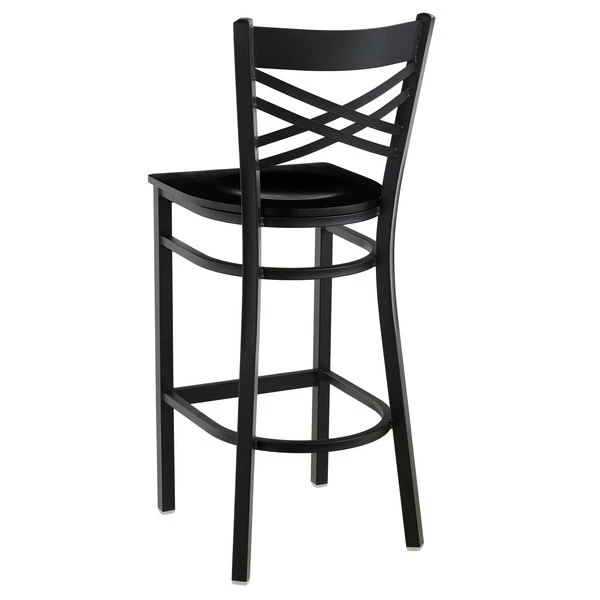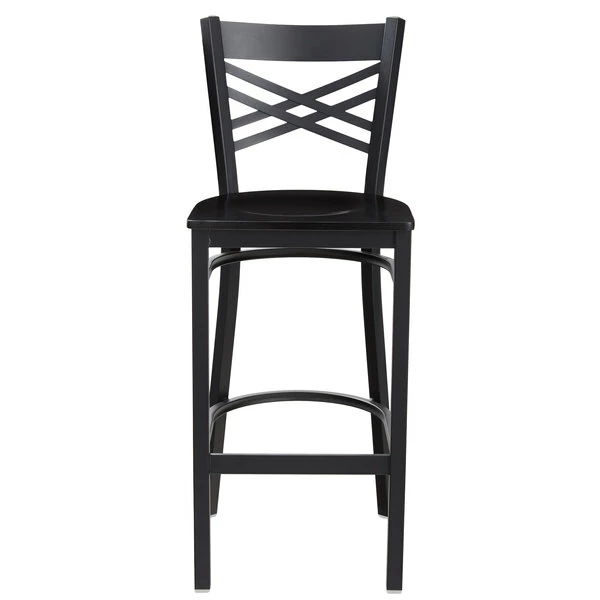 Lancaster Table & Seating Black Finish Cross Back Bar Stool With Black Wood Seat