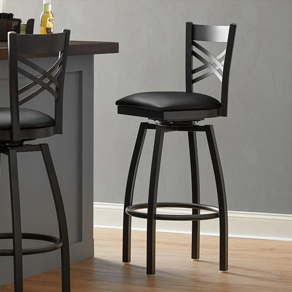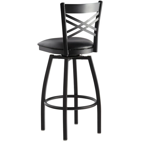 Lancaster Table & Seating Black Finish Cross Back Swivel Bar Stool With 2 1/2″ Black Vinyl Padded Seat