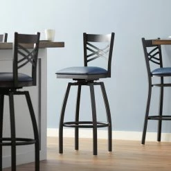 Be the first to review “Lancaster Table & Seating Black Finish Cross Back Swivel Bar Stool With 2 1/2″ Navy Vinyl Padded Seat” Cancel reply