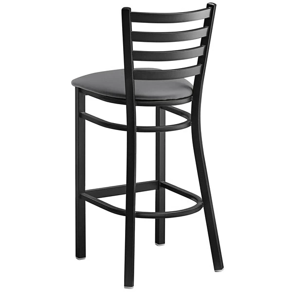 Lancaster Table & Seating Black Finish Ladder Back Bar Stool With 2 1/2″ Dark Gray Vinyl Padded Seat