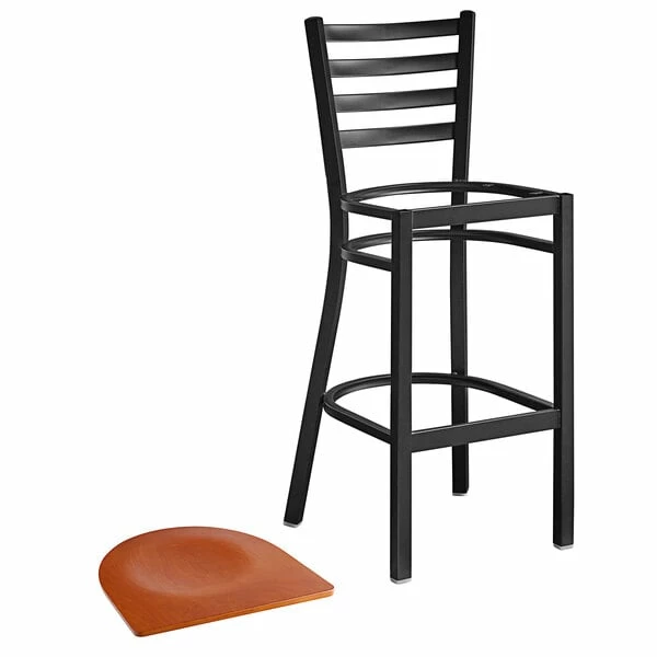 Lancaster Table & Seating Black Finish Ladder Back Bar Stool With Cherry Wood Seat