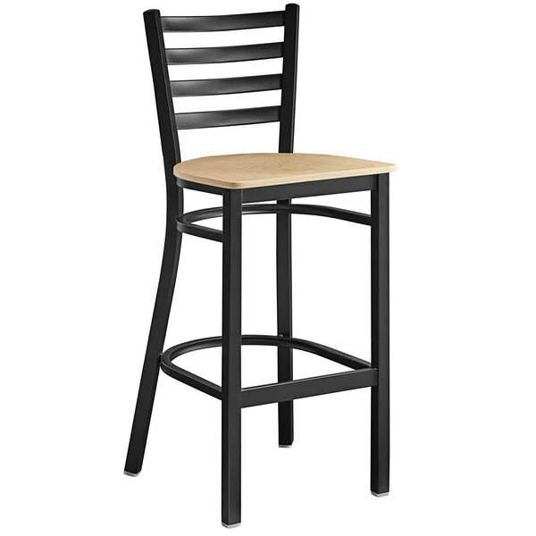 Lancaster Table & Seating Black Finish Ladder Back Bar Stool With Natural Wood Seat