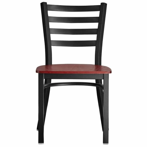 Lancaster Table & Seating Black Finish Ladder Back Chair With Mahogany Wood Seat