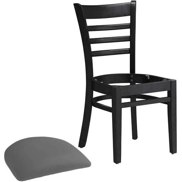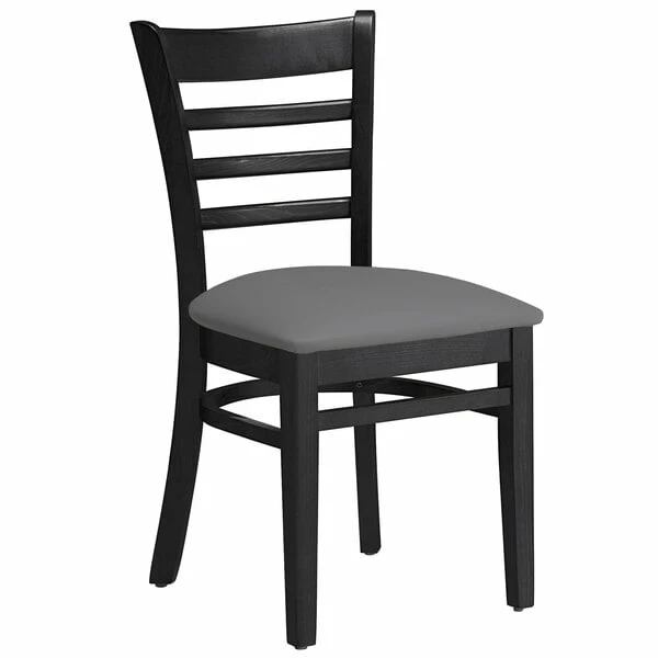 Lancaster Table & Seating Black Finish Wooden Ladder Back Chair With Dark Gray Padded Seat