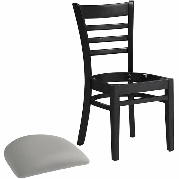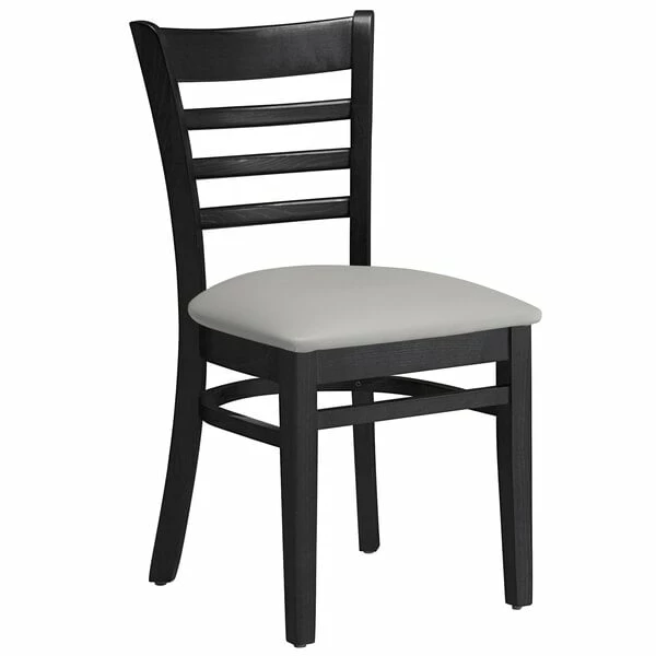 Lancaster Table & Seating Black Finish Wooden Ladder Back Chair With Light Gray Padded Seat