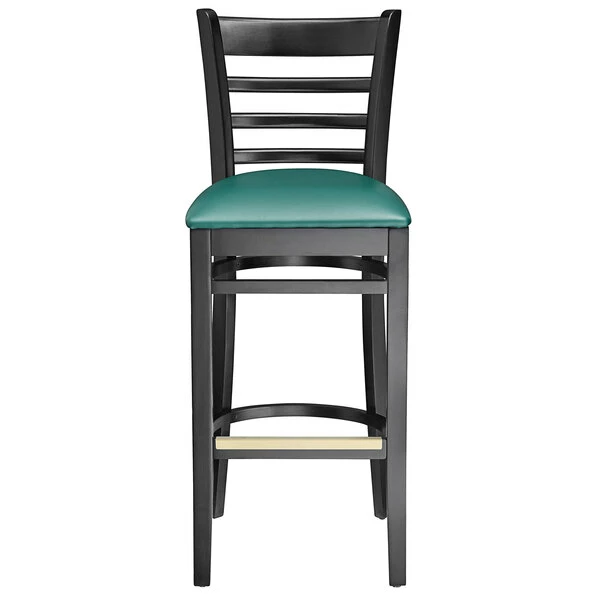 Lancaster Table & Seating Black Ladder Back Bar Height Chair With Green Padded Seat