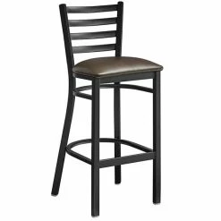 Lancaster Table & Seating Black Finish Ladder Back Bar Height Chair With 2 1/2″ Black Vinyl Cushion