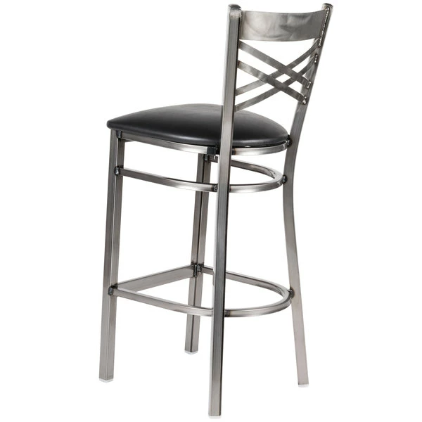 Be the first to review “Lancaster Table & Seating Clear Coat Finish Cross Back Bar Stool With 2 1/2″ Black Vinyl Padded Seat” Cancel reply