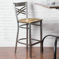 Lancaster Table & Seating Clear Coat Finish Cross Back Bar Stool With Driftwood Seat