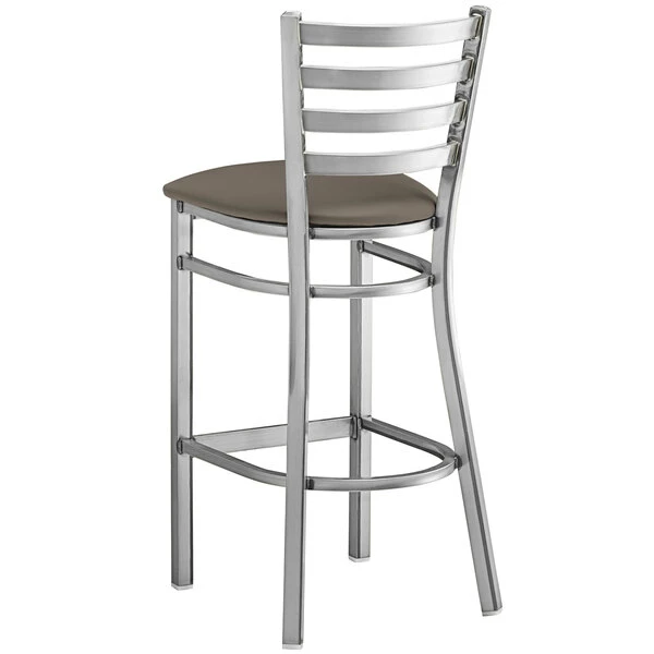 Lancaster Table & Seating Clear Coat Finish Ladder Back Bar Stool With 2 1/2″ Taupe Vinyl Padded Seat