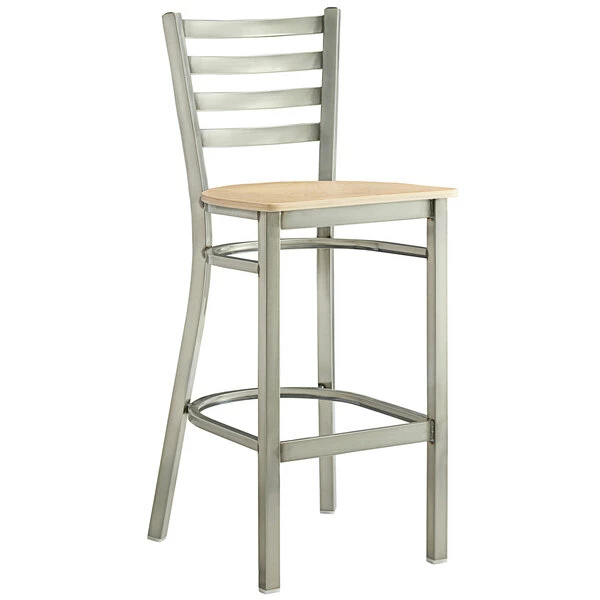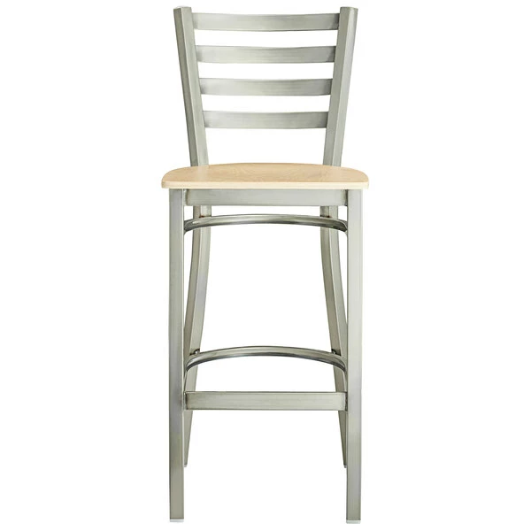 Lancaster Table & Seating Clear Coat Finish Ladder Back Bar Stool With Natural Wood Seat