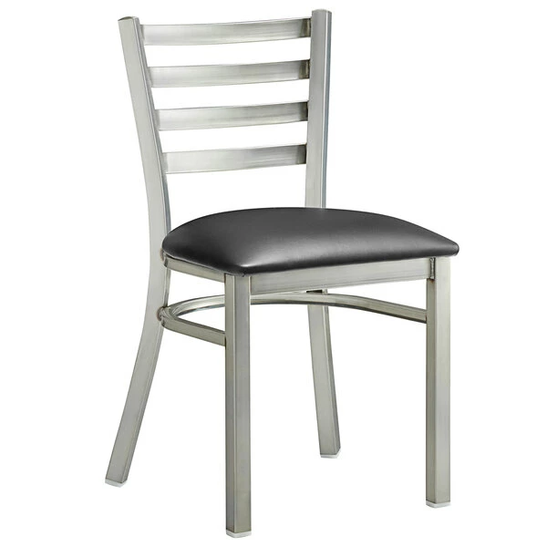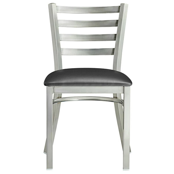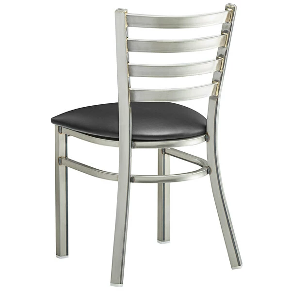 Lancaster Table & Seating Clear Coat Finish Ladder Back Chair With 2 1/2″ Black Vinyl Padded Seat