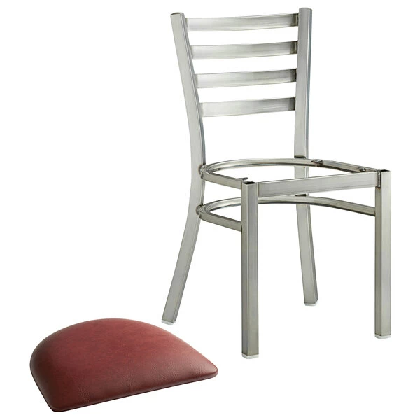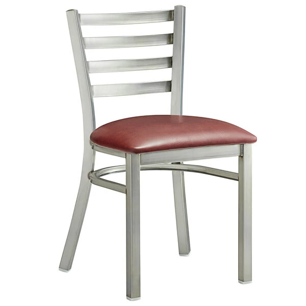 Lancaster Table & Seating Clear Coat Finish Ladder Back Chair With 2 1/2″ Burgundy Vinyl Padded Seat
