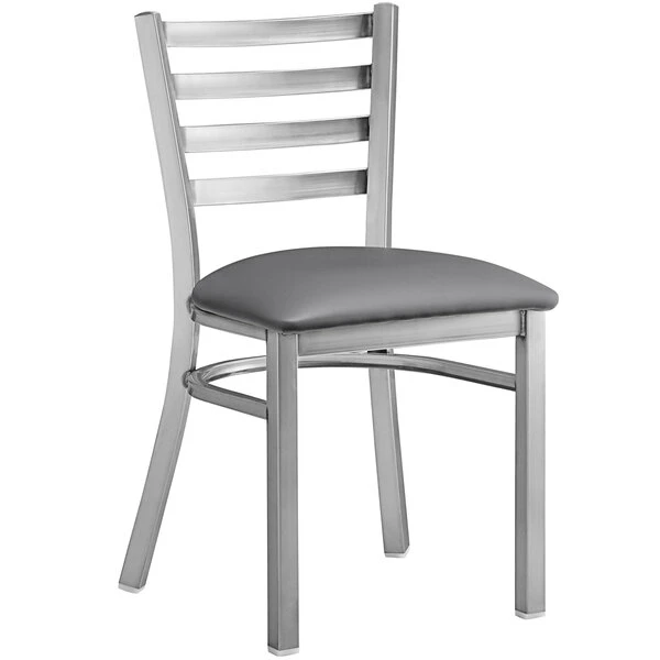 Lancaster Table & Seating Clear Coat Finish Ladder Back Chair With 2 1/2″ Dark Gray Vinyl Padded Seat