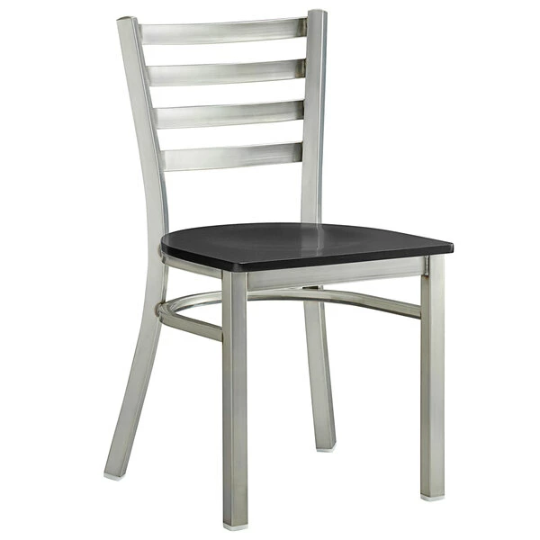 Lancaster Table & Seating Clear Coat Finish Ladder Back Chair With Black Wood Seat