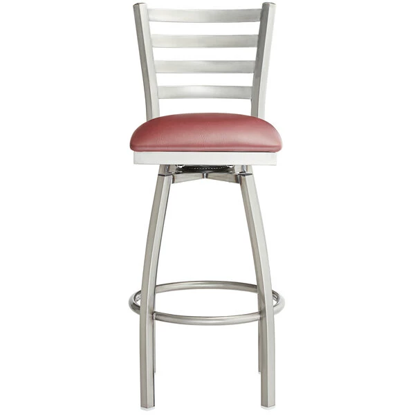 Lancaster Table & Seating Clear Coat Finish Ladder Back Swivel Bar Stool With 2 1/2″ Burgundy Vinyl Padded Seat