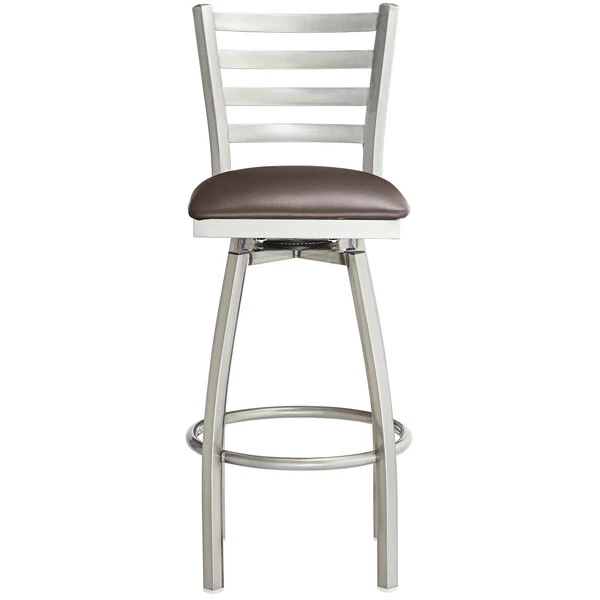 Lancaster Table & Seating Clear Coat Finish Ladder Back Swivel Bar Stool With 2 1/2″ Dark Brown Vinyl Padded Seat