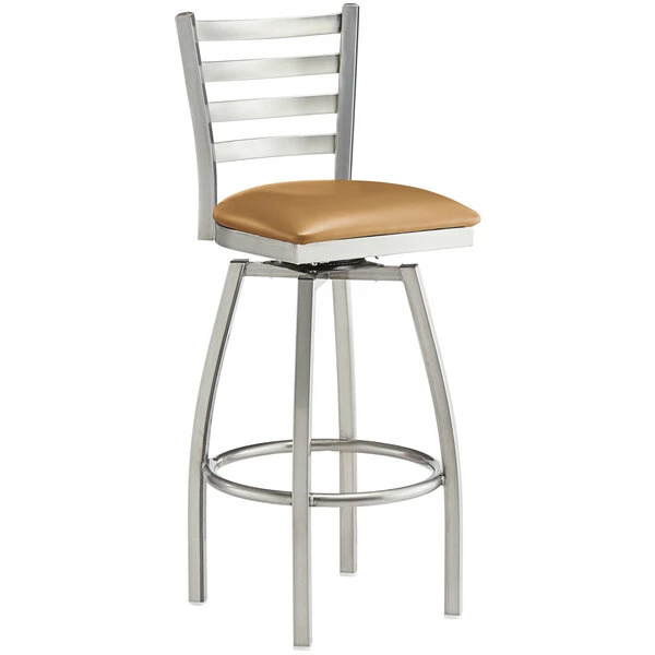 Lancaster Table & Seating Clear Coat Finish Ladder Back Swivel Bar Stool With 2 1/2″ Light Brown Vinyl Padded Seat