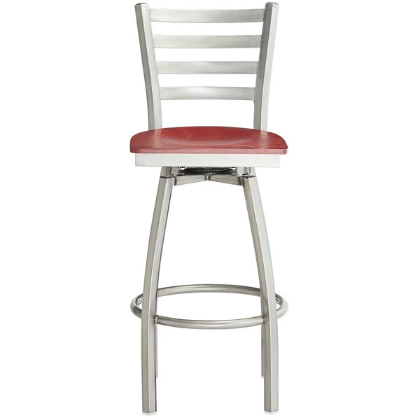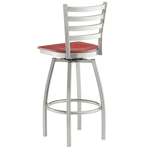 Lancaster Table & Seating Clear Coat Finish Ladder Back Swivel Bar Stool With Mahogany Wood Seat