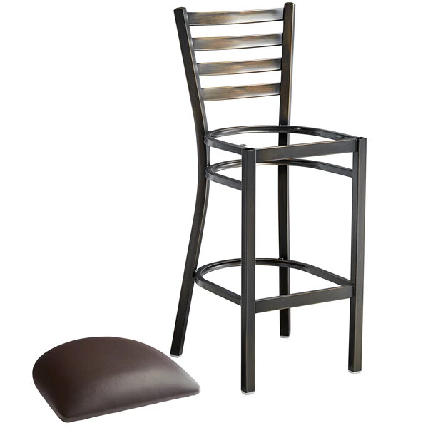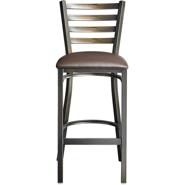 Lancaster Table & Seating Distressed Copper Finish Ladder Back Bar Stool With 2 1/2″ Dark Brown Vinyl Padded Seat
