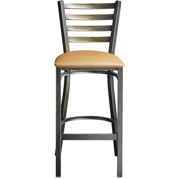 Lancaster Table & Seating Distressed Copper Finish Ladder Back Bar Stool With 2 1/2″ Light Brown Vinyl Padded Seat