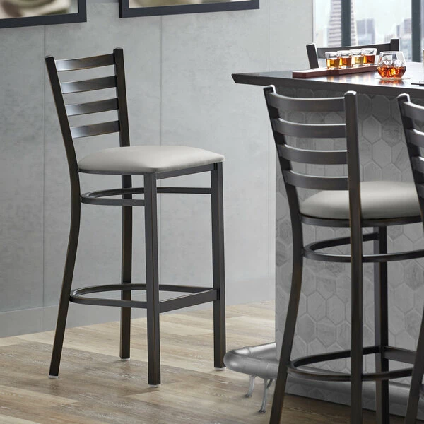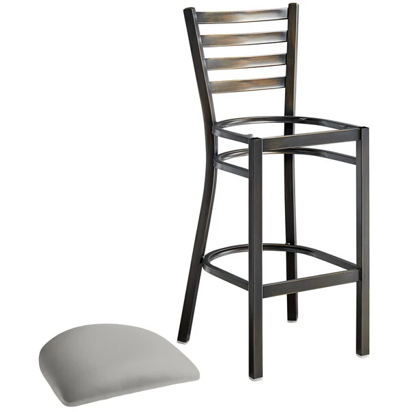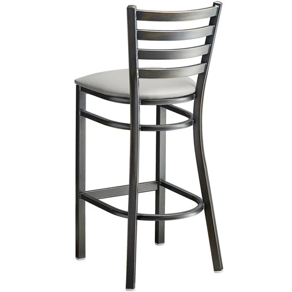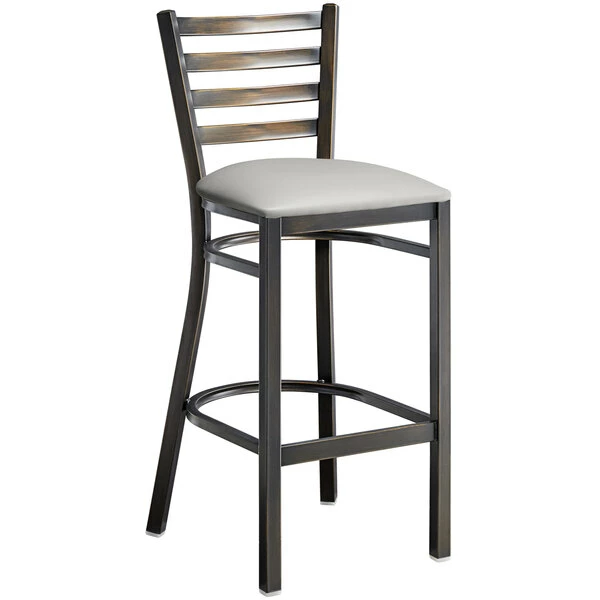Lancaster Table & Seating Distressed Copper Finish Ladder Back Bar Stool With 2 1/2″ Light Gray Vinyl Padded Seat