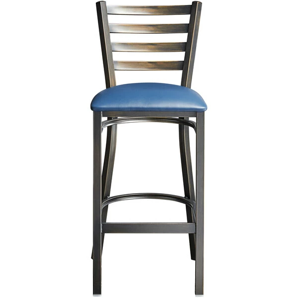Lancaster Table & Seating Distressed Copper Finish Ladder Back Bar Stool With 2 1/2″ Navy Blue Vinyl Padded Seat