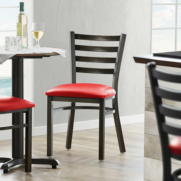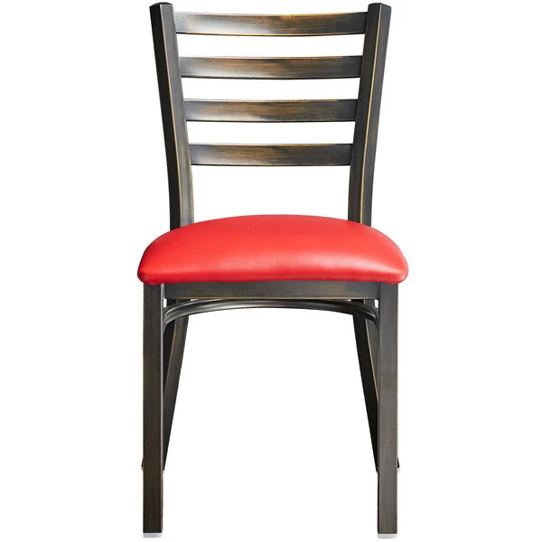 Lancaster Table & Seating Distressed Copper Finish Ladder Back Chair With 2 1/2″ Red Vinyl Padded Seat