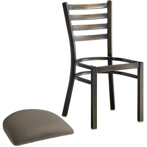 Lancaster Table & Seating Distressed Copper Finish Ladder Back Chair With 2 1/2″ Taupe Vinyl Padded Seat
