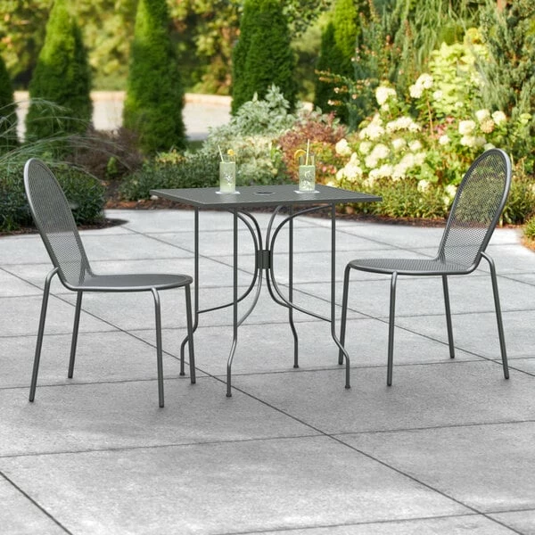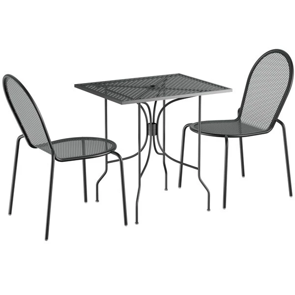 Lancaster Table & Seating Harbor Black 24″ X 30″ Rectangular Outdoor Standard Height Table With Ornate Legs And 2 Side Chairs
