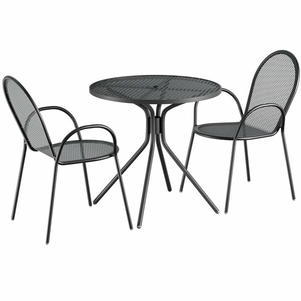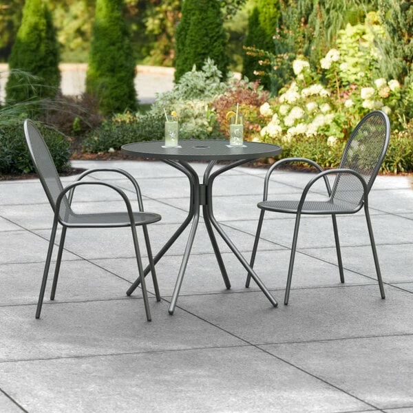 Lancaster Table & Seating Harbor Black 30″ Round Outdoor Standard Height Table With Modern Legs And 2 Arm Chairs
