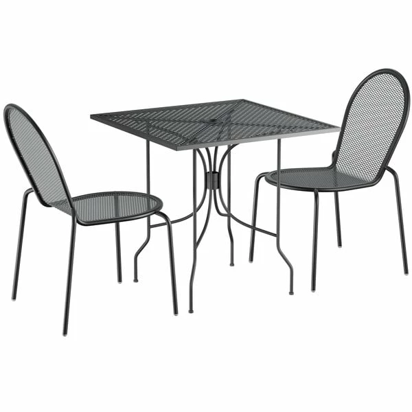 Lancaster Table & Seating Harbor Black 30″ Square Outdoor Standard Height Table With Ornate Legs And 2 Side Chairs