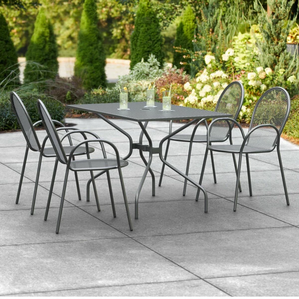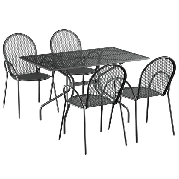 Lancaster Table & Seating Harbor Black 30″ X 48″ Rectangular Outdoor Standard Height Table With Modern Legs And 4 Arm Chairs