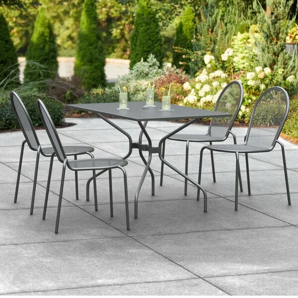 Lancaster Table & Seating Harbor Black 30″ X 48″ Rectangular Outdoor Standard Height Table With Modern Legs And 4 Side Chairs