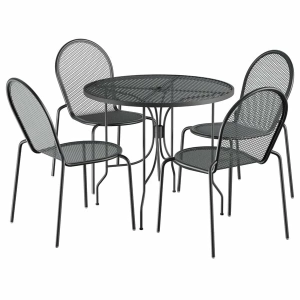 Lancaster Table & Seating Harbor Black 36″ Round Outdoor Standard Height Table With Ornate Legs And 4 Side Chairs