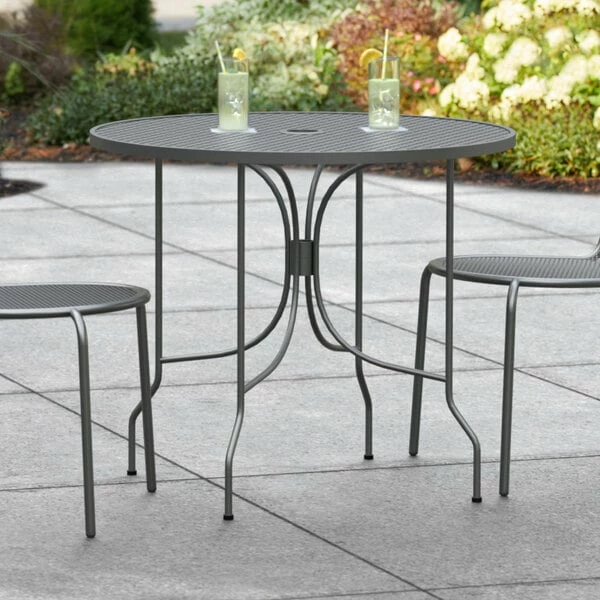 Lancaster Table & Seating Harbor Black 36″ Round Outdoor Standard Height Table With Ornate Legs