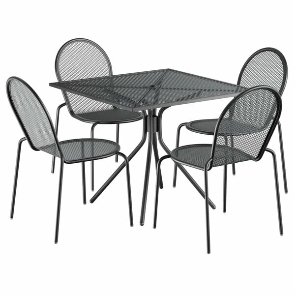 Lancaster Table & Seating Harbor Black 36″ Square Outdoor Standard Height Table With Modern Legs And 4 Side Chairs