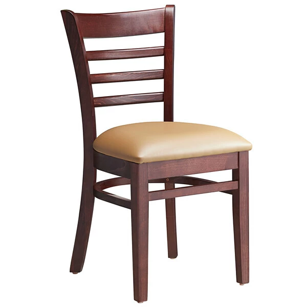 Lancaster Table & Seating Mahogany Finish Wooden Ladder Back Chair With 2 1/2″ Light Brown Padded Seat