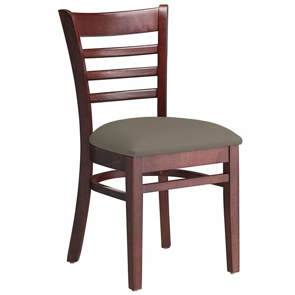 Lancaster Table & Seating Mahogany Finish Wooden Ladder Back Chair With Taupe Padded Seat