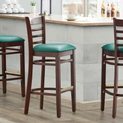 Be the first to review “Lancaster Table & Seating Mahogany Ladder Back Bar Height Chair With Green Padded Seat” Cancel reply