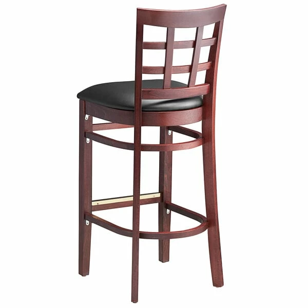 Lancaster Table & Seating Mahogany Window Back Bar Height Chair With Black Padded Seat